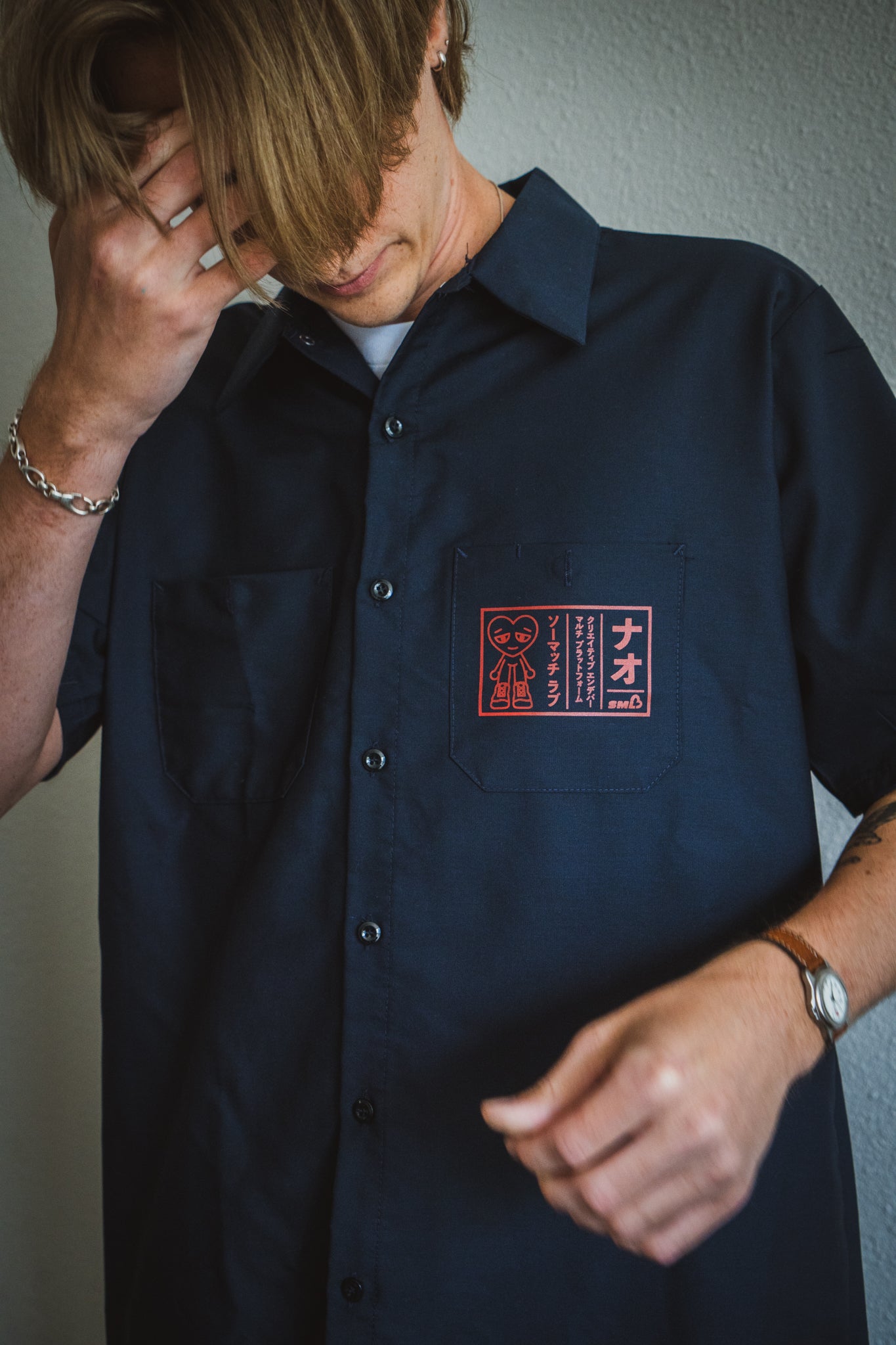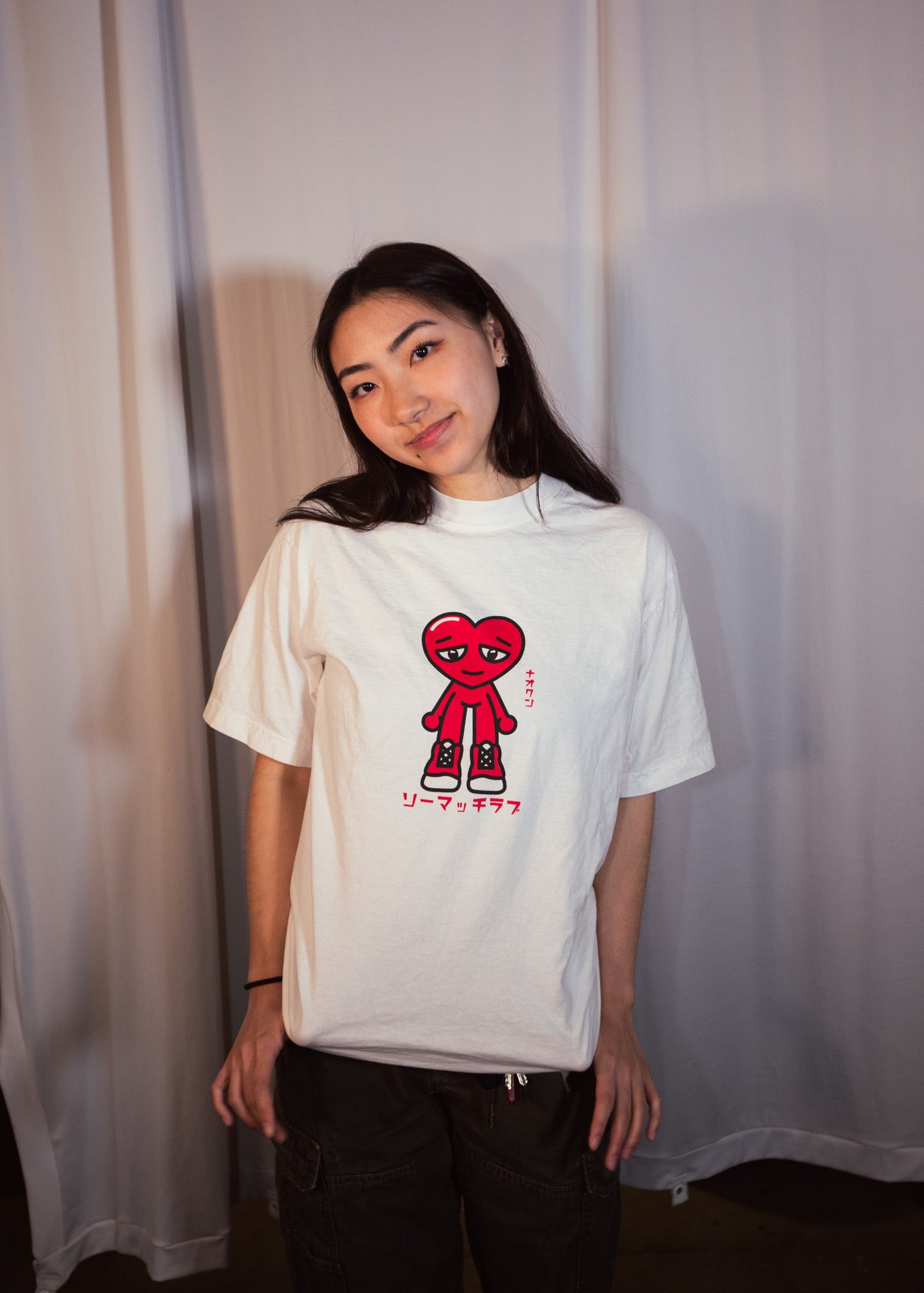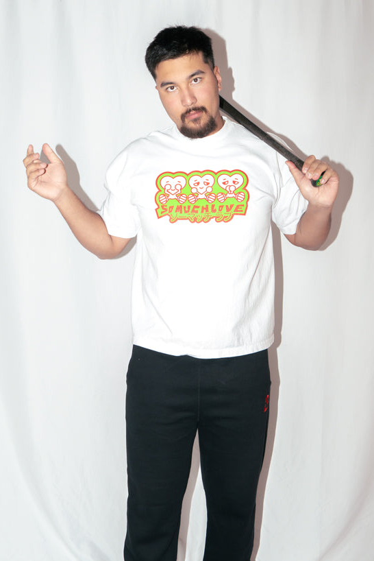 Dom Hellman(6'6) wearing a XXL Three Wise Nao's Tee.