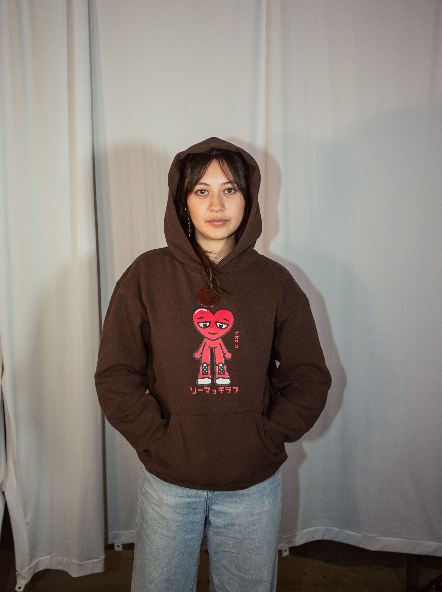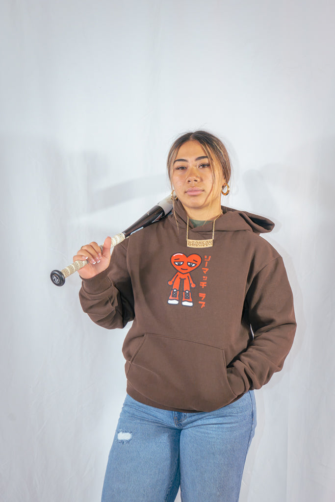 Braiesey Rosa(5'7) wearing a large Brown Hoodie.