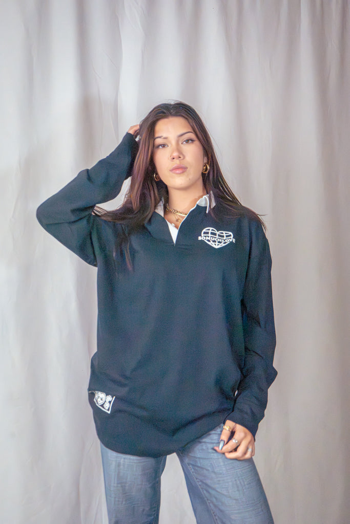 Brenna Pascual(5'9) is wearing a large Rugby Tee.